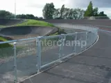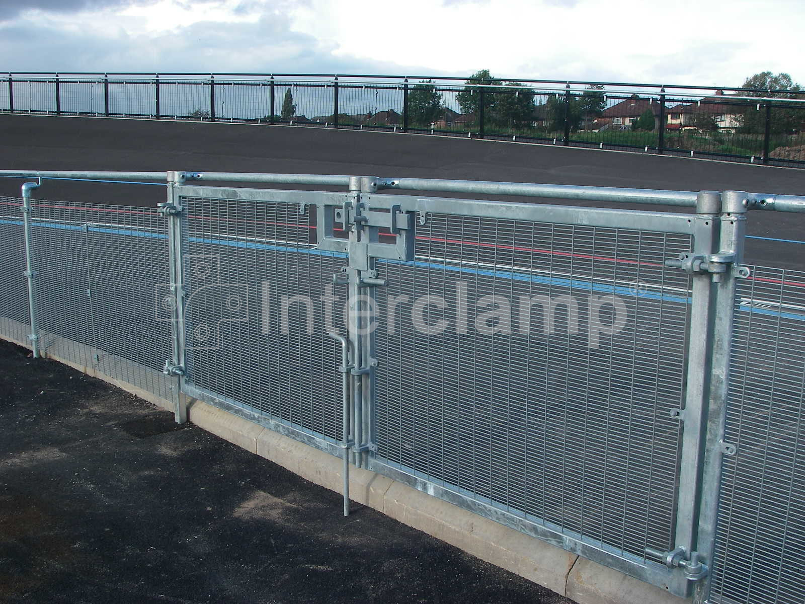 Des raccords à collier ont été utilisés avec des rampes et des panneaux grillagés DDA Assist pour construire des barrières piétonnes autour de ce vélodrome.