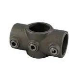 90° joint, often used between middle rail and uprights on level sites and often paired with type 101 or 104. The through tube (vertical in photo) cannot be joined within the fitting.